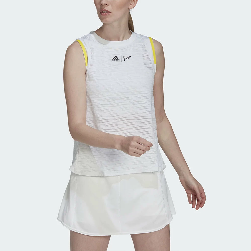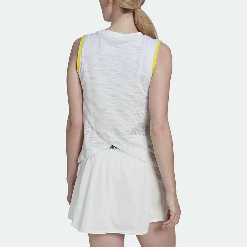 Serve for the oceans in the adidas London Match Tank! Part of an adidas collection created for the green grass of South-West London, this tennis tank top includes engineered graphics that send a warning about the plight of our blue planet. Made with a bit of stretch to keep your game flowing, it removes distractions with mesh details and moisture-absorbing AEROREADY.