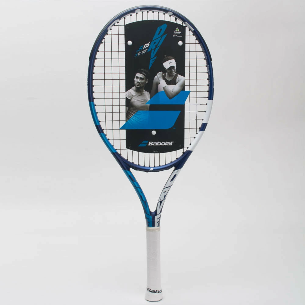The Babolat Drive Junior 25 combines power and spin to help young players conquer the court. Designed after the powerful Pure Drive racquet series, this junior model packs a punch into every swing. The graphite construction creates the spin and power to keep your opponent guessing, with enough control to keep the ball in play. For aggressive junior players looking to take the next leap forward in their game, the Babolat Drive Junior 25 brings you one swing closer to your potential!