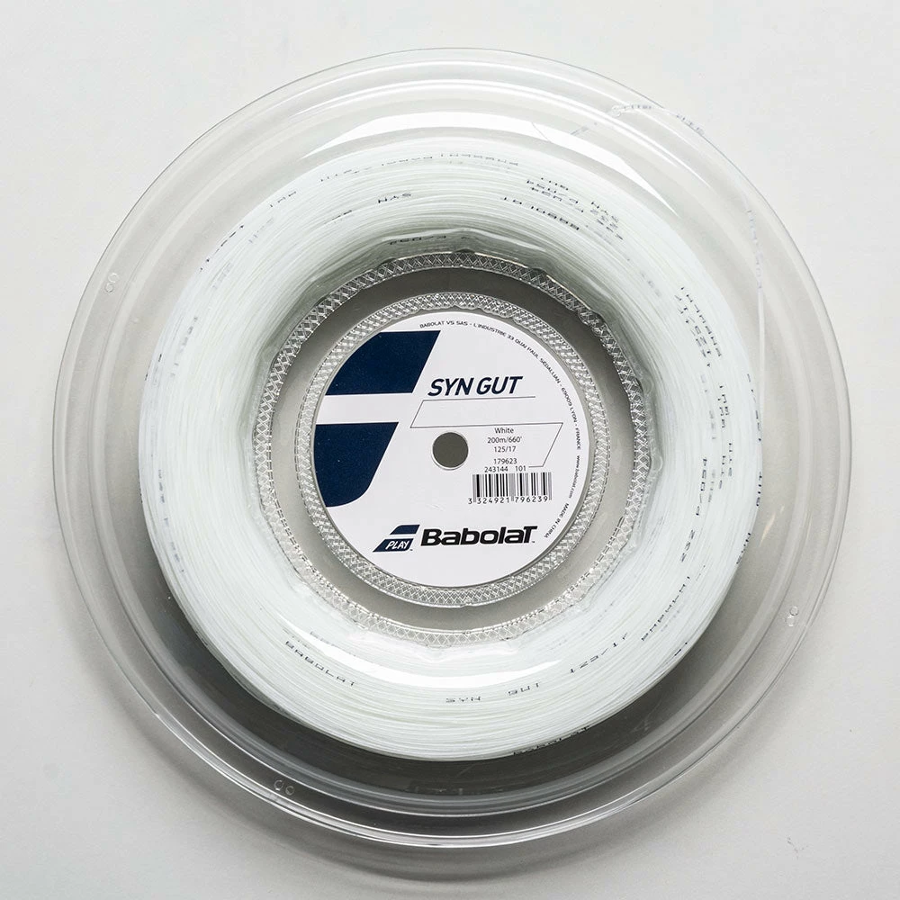 The Babolat Syn Gut 17 1.25 660′ Reel tennis strings are ideal for beginners and recreational players looking for comfort. This synthetic gut string is composed of a solid core wrapped in a swirl of flexible filaments to offer a wide range of playability. For players who want all-around performance within a budget, the Babolat Syn Gut 17 1.25 660′ Reel is a great option.
