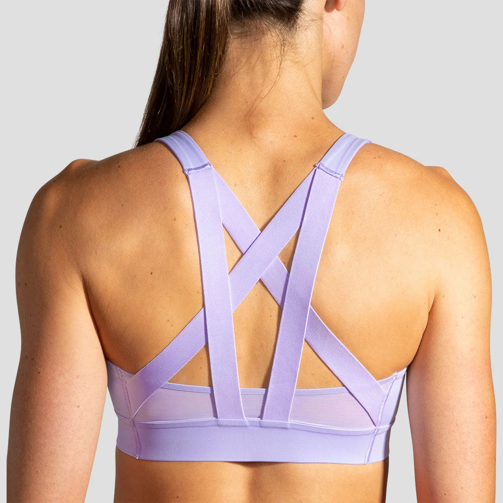Run-ready support meets a bold and breathable style in the Brooks Drive Plunge Run Bra! As part of the Brooks Drive collection, this run bra holds you in during high-impact exercise, moving with your body while providing just-right compression to reduce motion. Enjoy customizable coverage from the removable cups with envelope pockets. A strappy open back and strategic mesh in high-heat areas provide ventilation and bold style. When you need a run-ready bra that works as hard as you, choose the Brooks Drive Plunge and chase your goals!