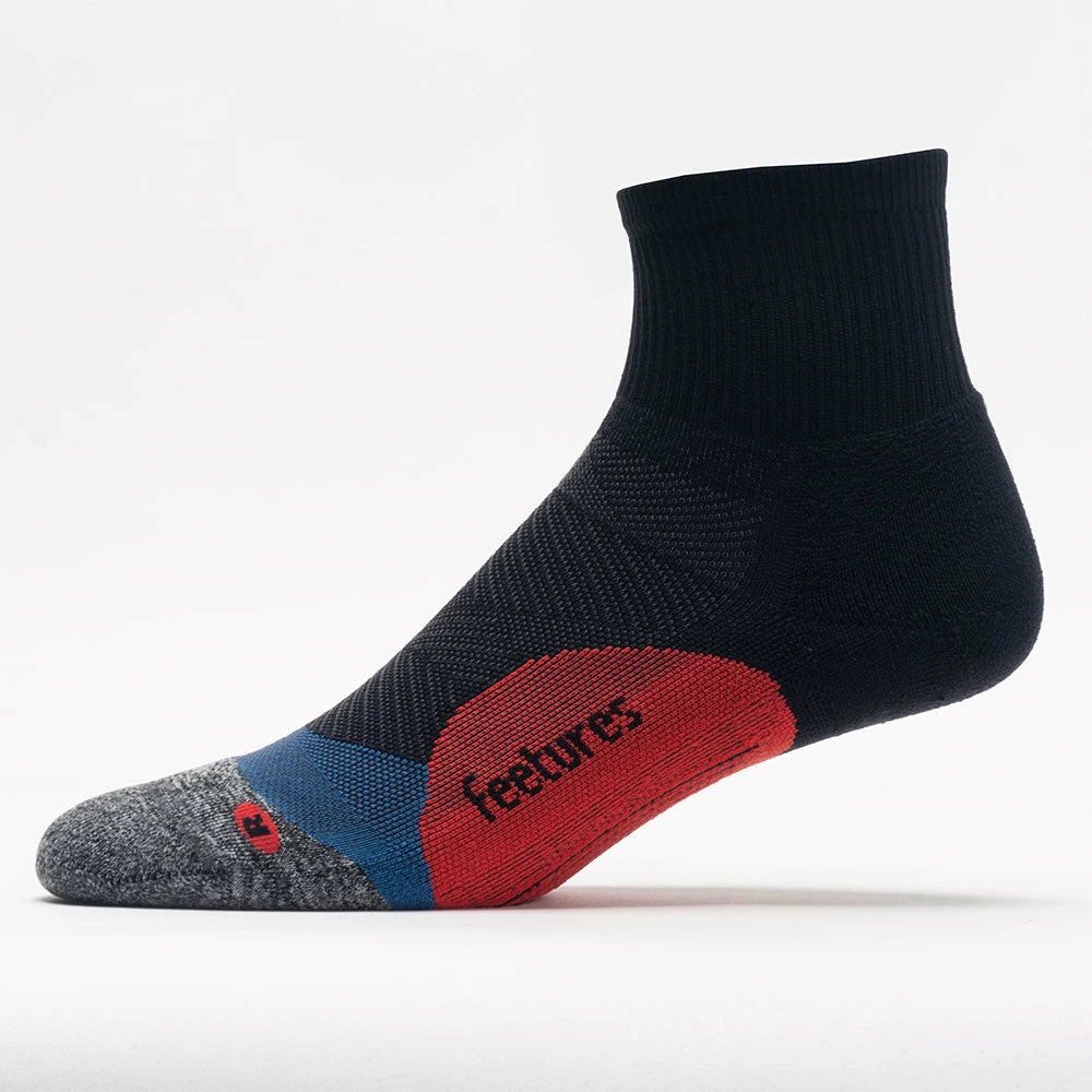 The Feetures Elite Max Cushion Quarter socks make all the difference when performance is your focus. The soft, iWick® enhanced fabric wraps around the foot for a luxurious feel while preventing excess moisture from building up. An anatomical design provides an improved fit to deliver maximum comfort and protection by eliminating blisters.