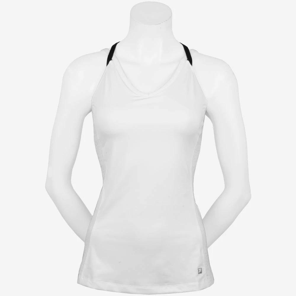 The FILA Spotlight Halter Tank is a trendy and lightweight tank for summer days at the tennis courts. The sleek, moisture-wicking fabric with contrasting color, skinny strap design is both comfortable and flattering. Subtle dot design along the sides adds a nice touch while the built-in bra adds extra support.
