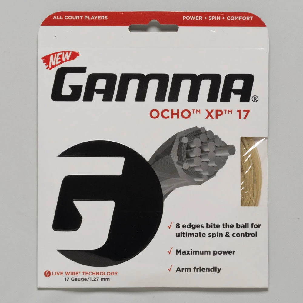 The unique eight edge design of Gamma Ocho XP 17 tennis string allows it to bite the ball to create optimum spin and control. This arm-friendly string also provides excellent comfort. Live Wire® technology adds maximum power.