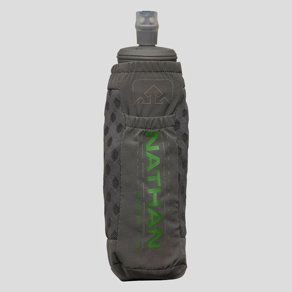 The Nathan ExoShot 2.0 Handheld is the ultra-lightweight hydration system made for the minimalist trail and road runners. This updated handheld features Nathan’s popular soft flask in a 14oz version. This new edition features an integrated hand strap and rigid ExoSpine™ for ultimate comfort and efficiency.