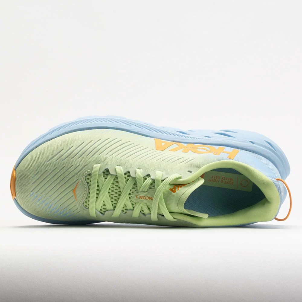 Run the speed of light in the Hoka Rincon 3! This neutral running shoe reduces weight so you can increase your mileage. Slide into an engineered mesh upper to stay cool while cruising through the miles. Enjoy signature-soft cushioning with every stride on the EVA midsole as the Meta-Rocker technology guides you forward. Comfortably soft and incredibly light, the Hoka Rincon 3 leads a smooth and effortless ride!