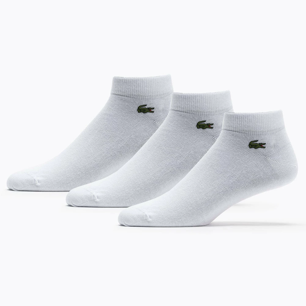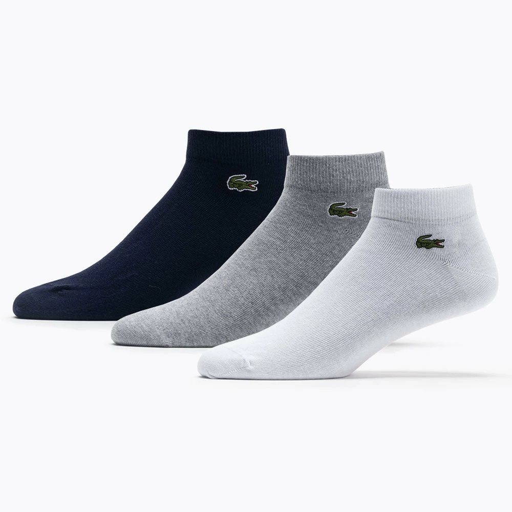 Crafted in soft, resistant, stretchy cotton jersey, the Lacoste Low Socks 3 Pk feature ribbed ankles and a small embroidered green crocodile. Oversized contrasting and brand lettering creates a signature look. From the courts to the couch, slip the Lacoste Low Socks on for a comfortable session.