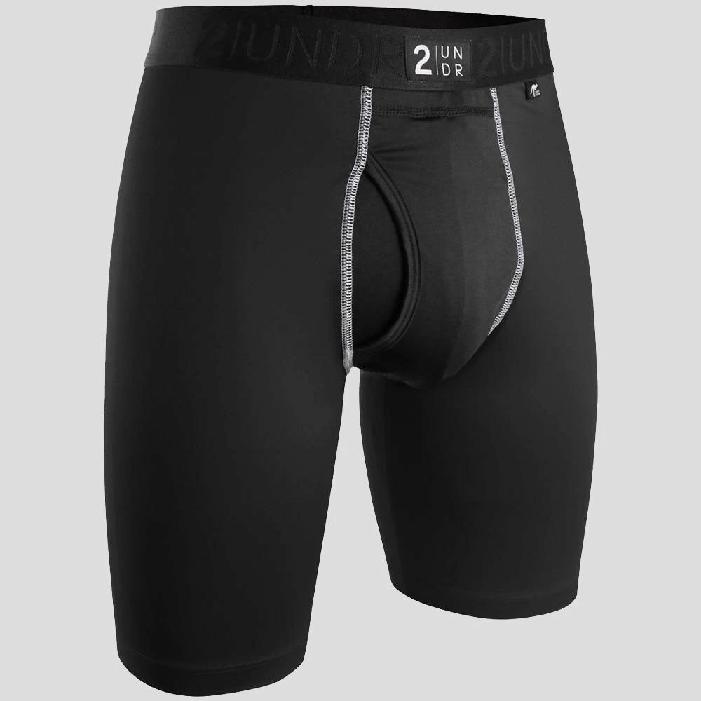 The new 2UNDR Power Shift 2.0 9 Long Leg Boxer Briefs continue their tradition of providing an excellent feel under your gear as well as support and quick-drying performance. This update features a longer length and an added SWAAS patch at the back, just below the waist for better coverage. Now, guys have a four-way stretch, mesh V-panel with enhanced ventilation for even better fit and breathability.