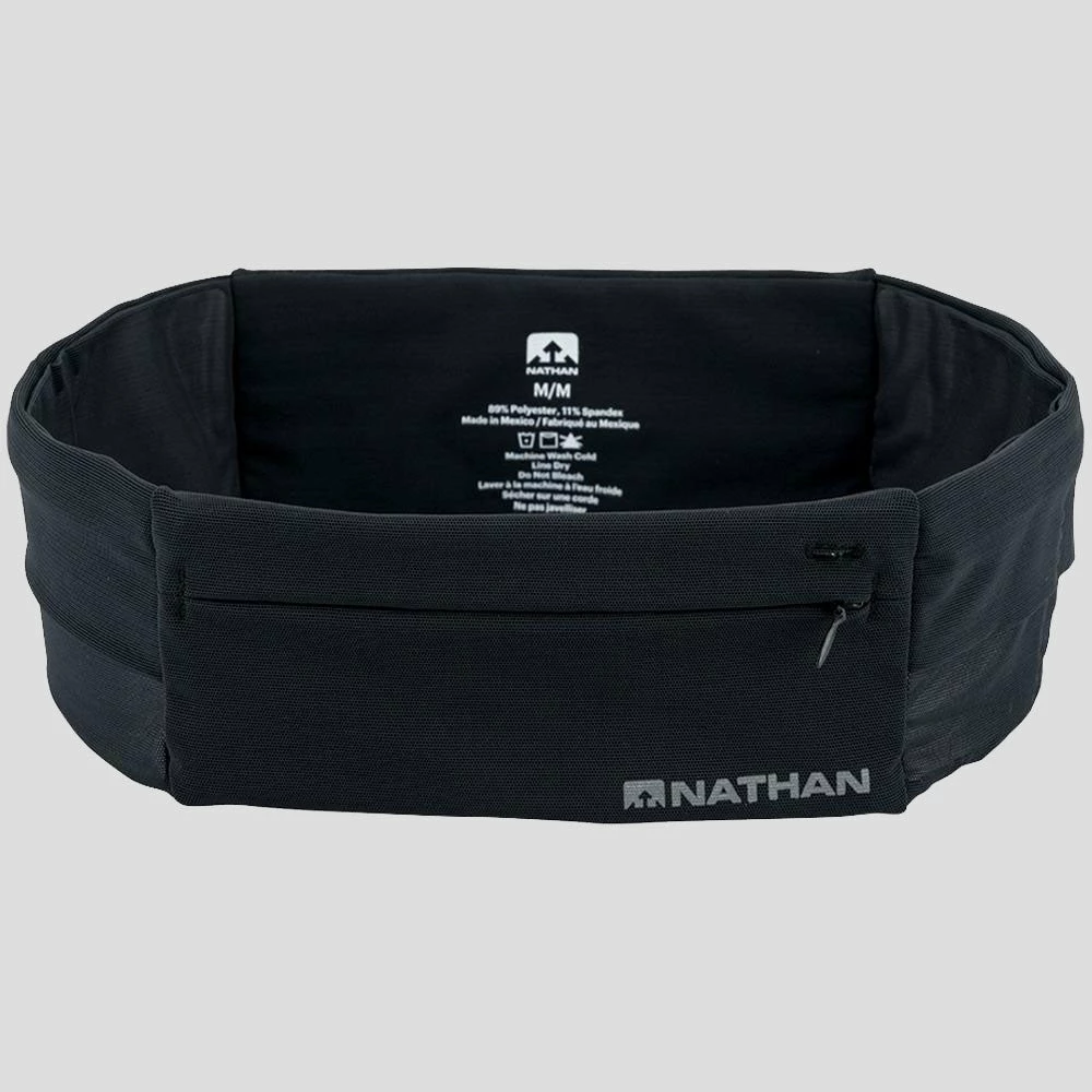 With individually separated pockets, the Nathan The Zipster Lite carrier allows you to customize your fit, feel, and organization on the run. Super-soft stretch and expandable pockets provide a secure fit and smooth silhouette while you run. It wont bounce or change position. The sleek profile allows it to lay comfortably around your waist, fitting in perfectly with your look.