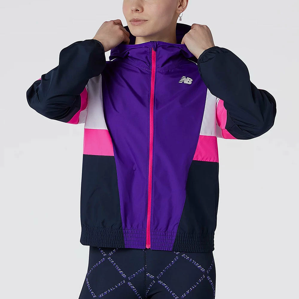 Stay bold and confident in tough weather with the New Balance Fast Flight Jacket! This running jacket makes a style statement with its bold color-blocked paneling. NB Water Defy water-resistant technology and NB Wind Defy technology protect against the elements, while the relaxed fit easily suits your workout style. Breathable polywoven material ties the piece together with a comfortable touch.