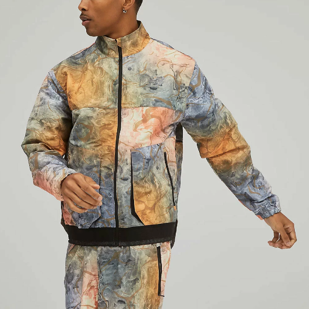 Featuring both Water Defy water-resistant and Wind Defy wind-resistant technologies, the New Balance PMV Kimbia Jacket provides a protective layer for any run. This running jacket also includes a back vent for added airflow and metallic branding for premium style. Made for the earth-conscious runner, this jacket uses an innovative dye method that reduces water consumption by at least 80% per yard compared to traditional dyeing methods and features a reflective print inspired by dry riverbeds in Kenya.