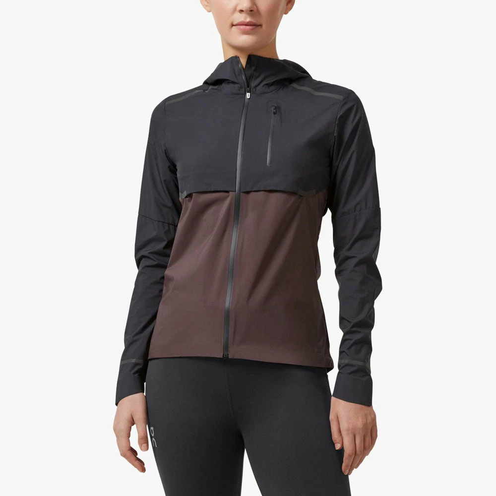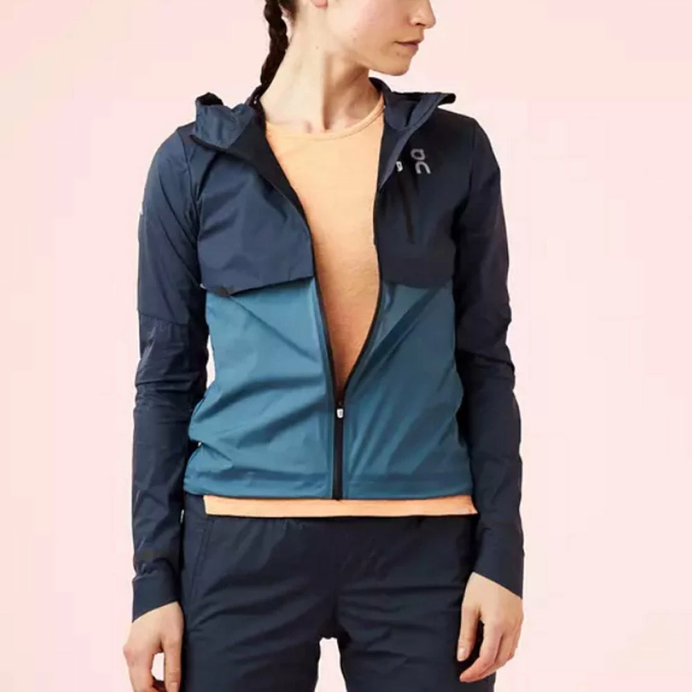 The On Weather Jacket for women provides a lighter than air feel with its 360 degrees of ventilated, 100% Nylon protective material. This technical jacket provides durable, water-repelling coverage and a well-fitted hood that won’t obscure your view while running in unpredictable we ather. It’s also incredibly portable as it can be folded up and stashed w ithin its own water-resistant breast pocket when you don’t need it.