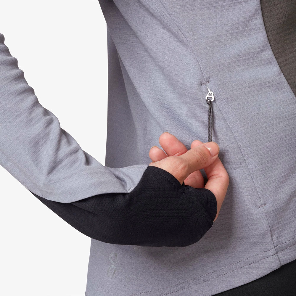 The On Clima-Shirt for women is the perfect layering piece for running in chilly weather or for wearing casually during your errands. This super soft top features excellent breathability from micro-ventilation-patterning, keeping moisture under control during activity. Laser-cut ventilation at the back provides further airflow and the adjustable V-neck design allow you to personalize this top according to the climate.