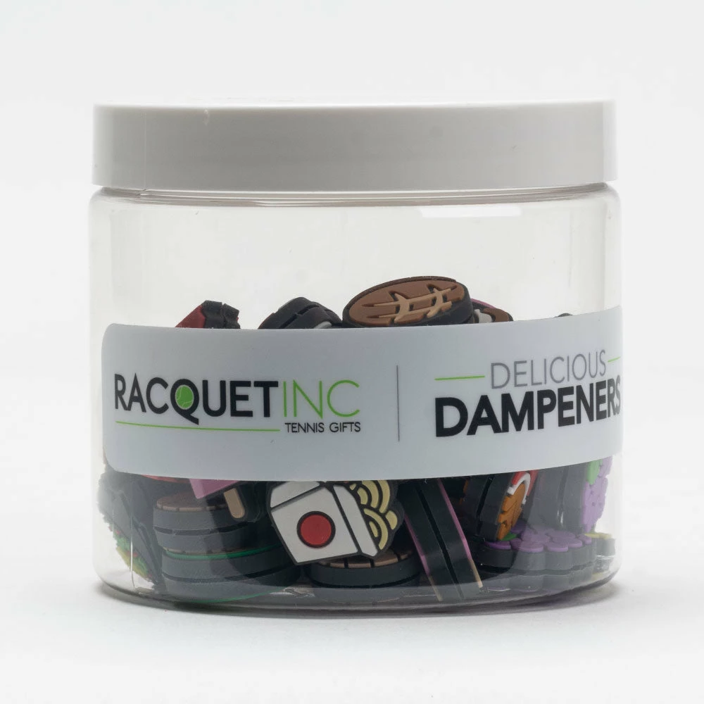 Looking for a fun way to add style and comfort to your swing? Try the Racquet Inc Delicious Dampeners Jar of 60! Available in many flavors, these cute dampeners decrease string movement to help you focus on enjoying the match.