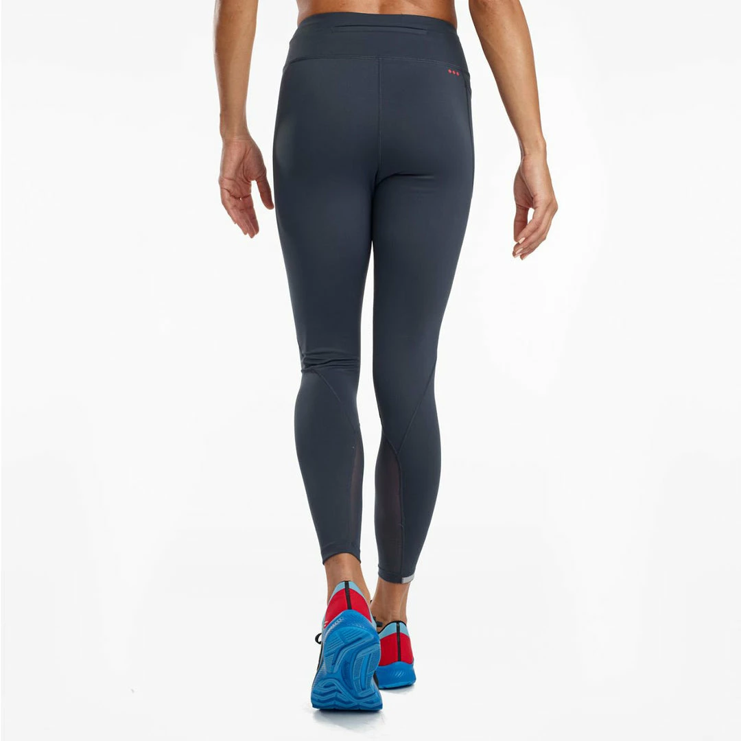 Fast and fashionable, the Saucony Fortify High Rise 7/8 Tight stays in place as you run. These running tights feature stretchy and supportive nylon fabric that fits like a second skin for all your activities.