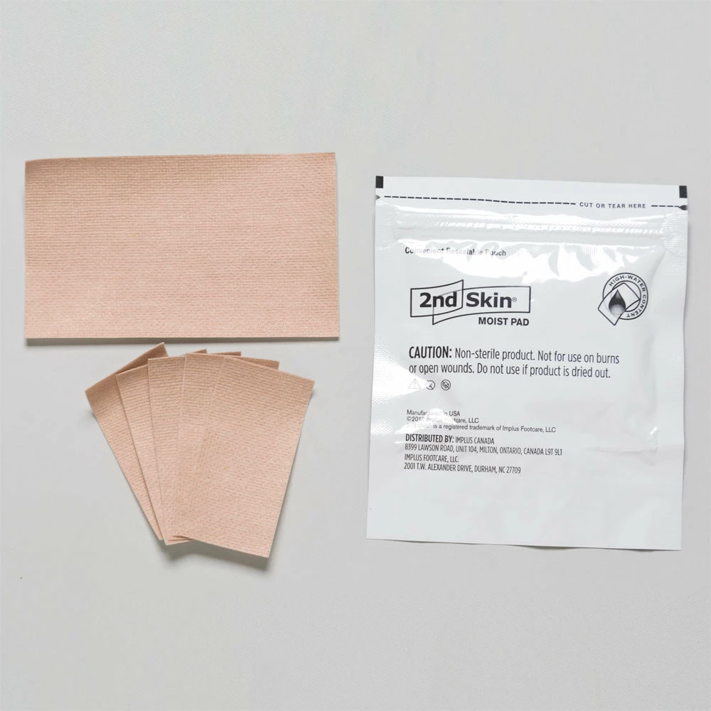 The SPENCO® 2nd Skin® Dressing Kit contains 2nd Skin® Moist Pads (non-sterile). They cool and soothe on contact and won’t stick to the skin. They stay on to help protect against rubbing and blisters.