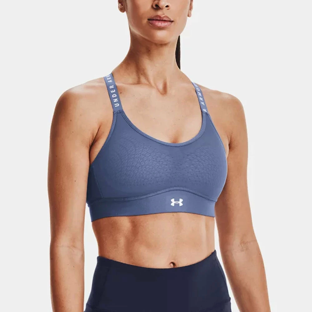 The Under Armour Infinity Mid sports bra throws out traditional construction rules and injects the padding in a figure-8 pattern for a more aerodynamic fit and a lighter feel. Strategic perforations allow for zoned cooling and a fast-dry fabric keeps you comfortable during exercise.