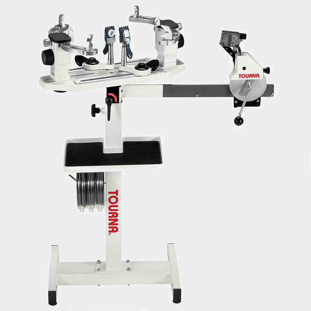 The Tourna 350-CS Stringing Machine is a six-point manual stringing machine that excels at stringing tennis, racquetball and squash racquets. This machine features CNC swivel clamps that offer easy maneuverability to clamp any string. Articulated side arms (single knob adjustable) provide convenient and secure mounting. The oversized base and locking arm are easy to maneuver as the quick cam-lock mechanism clamps lock securely and efficiently. Featuring both LB and KG scales, the Tourna 350-CS Stringing Machine gets the job done!