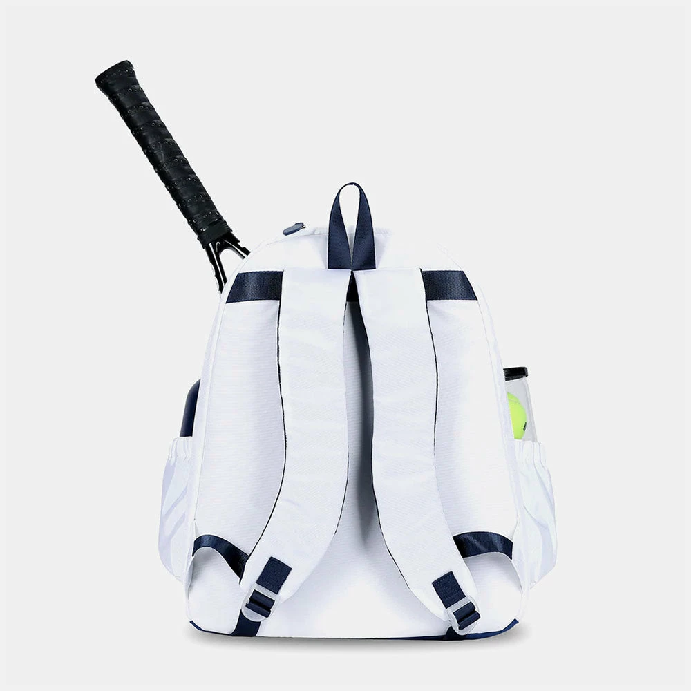 Convenient and compact, the Ame and Lulu Courtside Tennis Backpack 2.0 takes everything you need for the match. Fit up to two racquets in the interior racquet pocket. Two exterior water bottle pockets help with hydration, while an interior zip pocket protects your essentials. Enjoy comfortable carrying to and from the court with the padded, adjustable backpack straps.