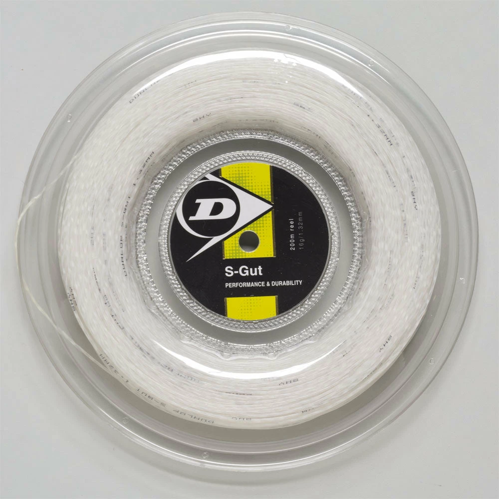 Dunlop S-Gut 16 tennis string delivers both performance and durability. This multi-filament string is great for all-around playability while highly elastic synthetic fibers provide power.