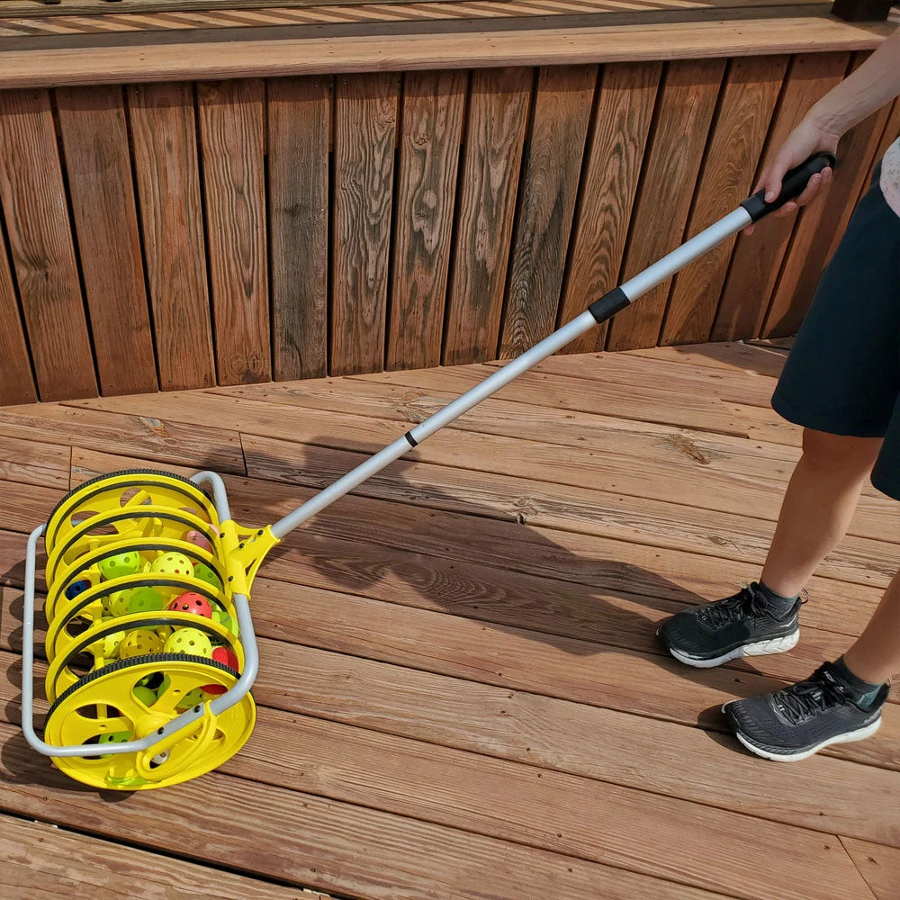 The Oncourt Offcourt MultiRoller is a unique way to pick up tennis balls (including larger red balls) and pickleballs. The MultiRoller tennis ball picker scoops up balls rolling either forward or backward. When not in use, it stands up for convenient storage or staying courtside. This multifunctional device does the hard work, so you can pick up balls without bending over and hurting your back. Forget all the hassle–the Oncourt Offcourt MultiRoller makes picking up balls fun!
