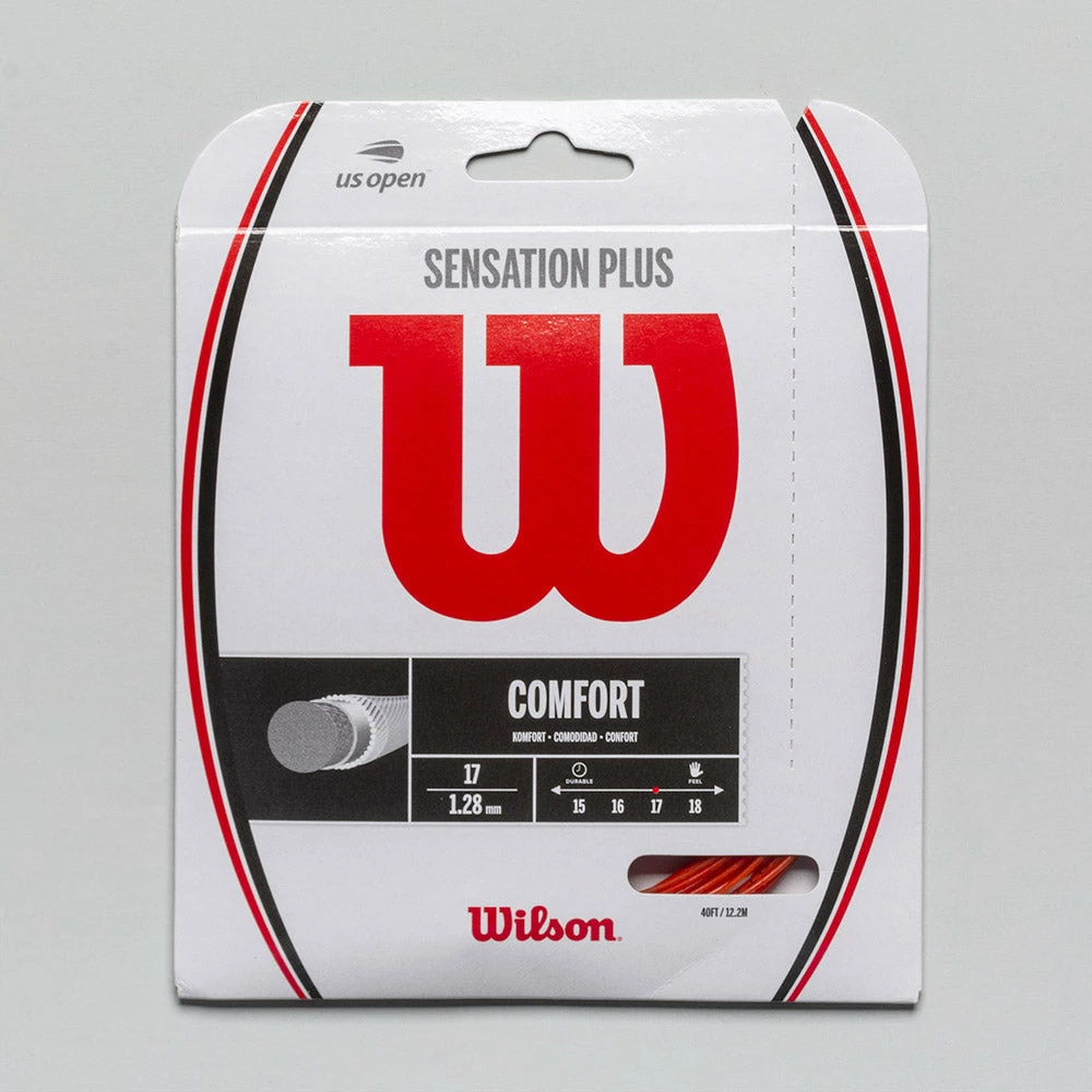 The new Wilson Sensation Plus 17 tennis string is an update to the original Sensation string. This new string helps players achieve even better control from the addition of outer metallic ribbons to an elastic nylon core.