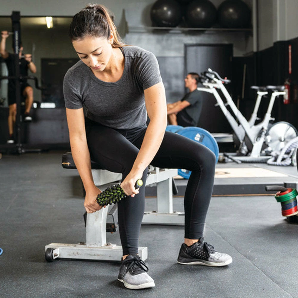 Deep-tissue massage is easy and portable with the Trigger Point STK Target, a targeted deep-tissue massage bar that features eight independently spinning wheels. Ergonomic handles make it easy to use, and a special coating on the gears allows it to better grip skin for a more effective massage.
