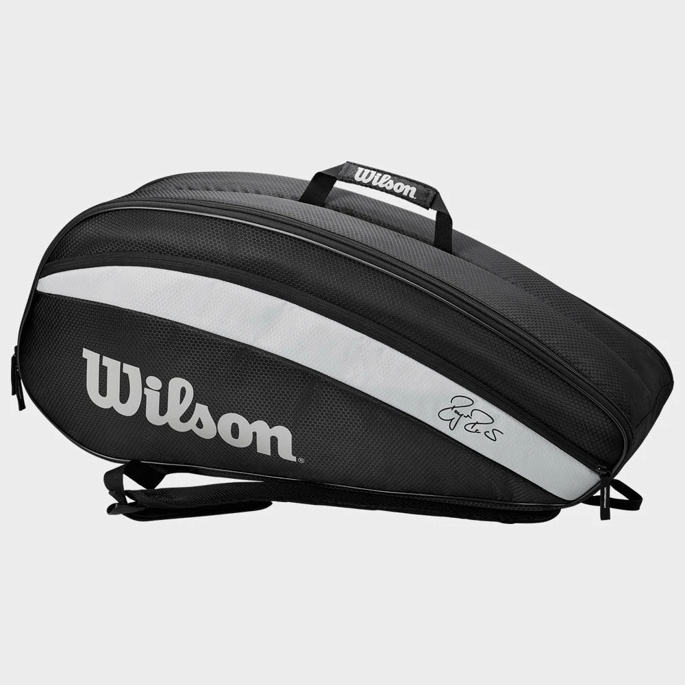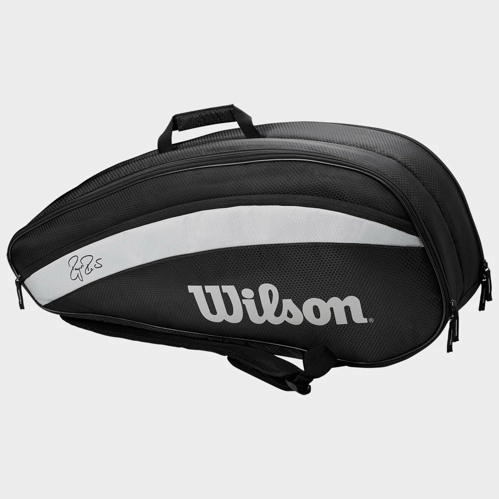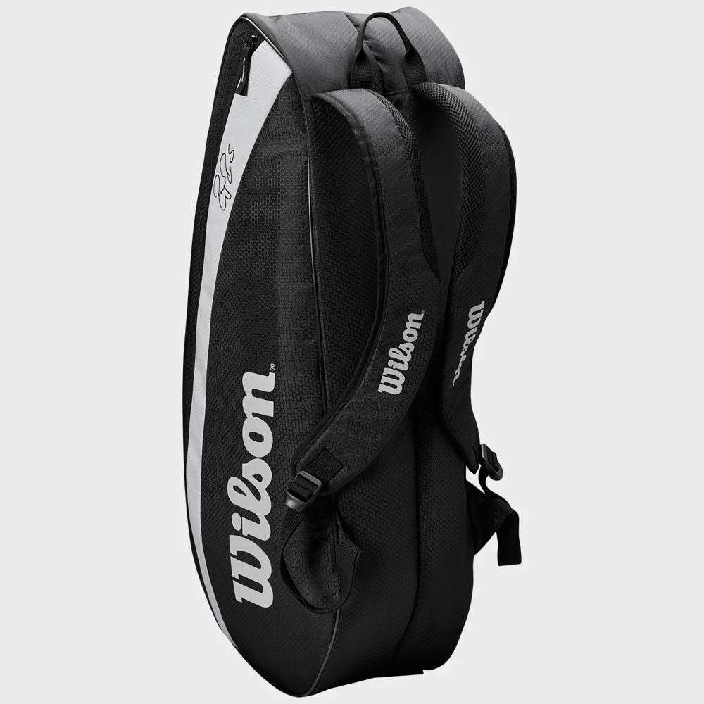 The Wilson Federer Team 6 Pack bag combines convenient storage and a cool design for rising tennis players. Fit up to six racquets in the two main compartments along with the rest of your gear. The large accessory pocket provides a home for wristbands, tennis balls, dampeners and more. Enjoy comfortable carrying with the padded shoulder straps and top handle to bring everything you need for your match.