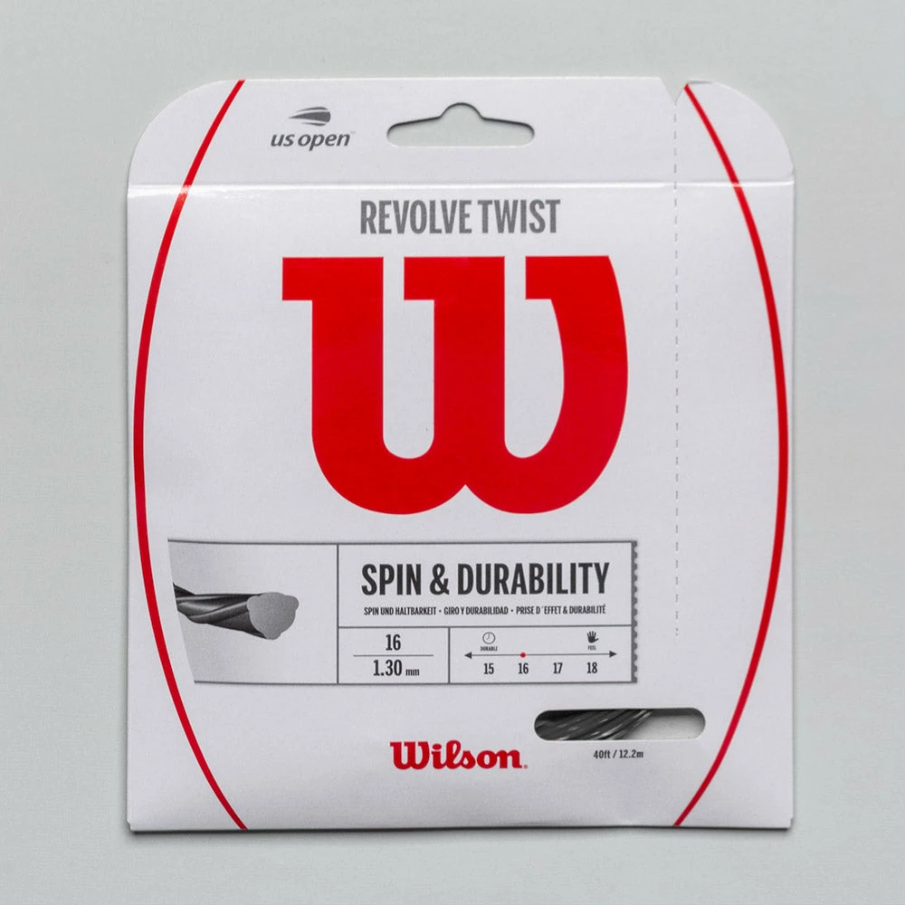 Designed to give you access to maximum spin, Wilson Revolve Twist 16 tennis racquet string features spin enhancing snap-back properties. Now with the 3 bump twist construction, players achieve even more spin!