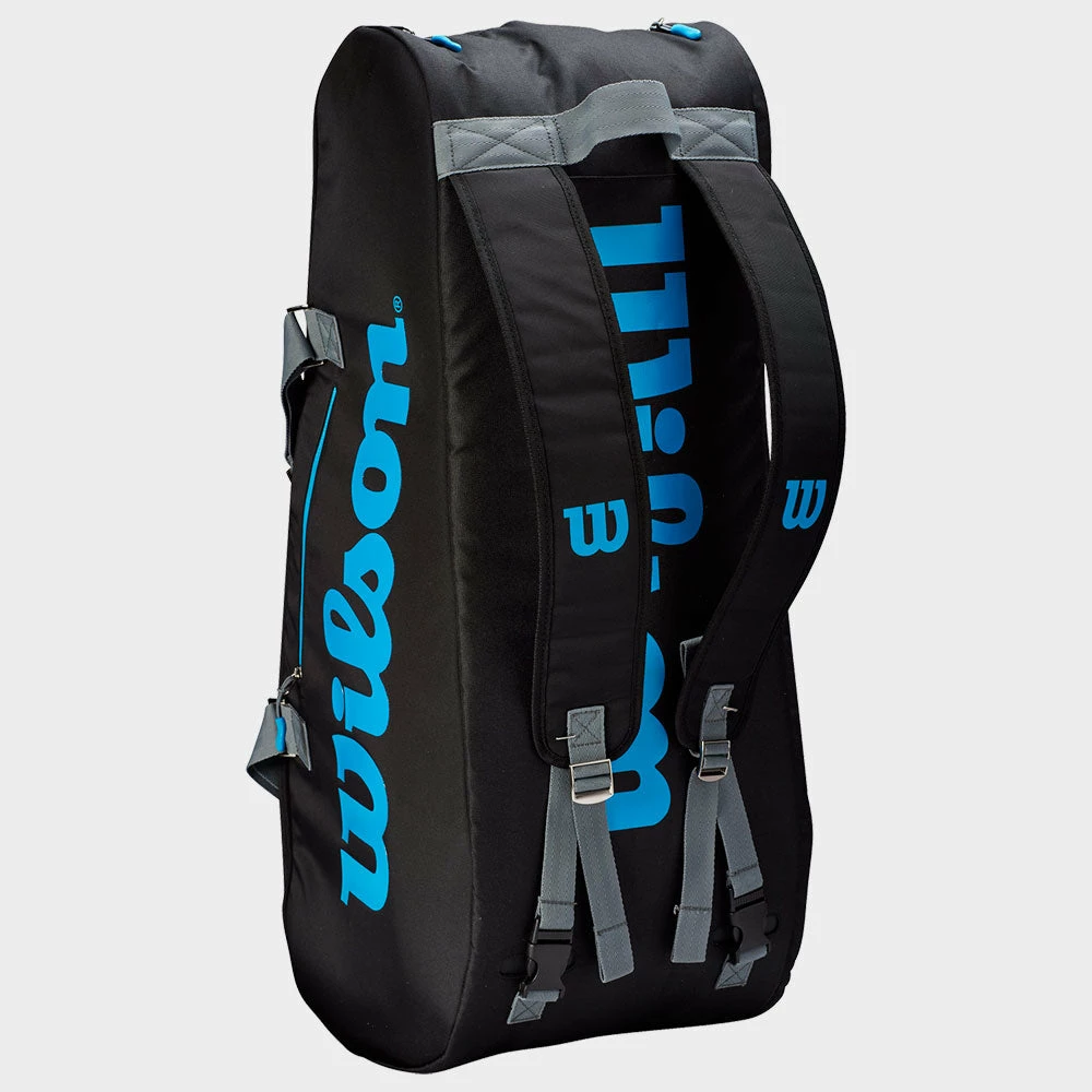 Avid tennis players will love the practicality and slick design of the Wilson Ultra 9 Pack tennis bag! Fit up to nine racquets in the two main compartments. Two large exterior side pockets and two small fleece-lined side accessory pockets provide extra storage. Keep your contents cool in the Thermoguard lining main compartment. With dual carrying systems for convenient transportation, the Wilson Ultra 9 Pack tennis bag brings all your tools for success to the court.