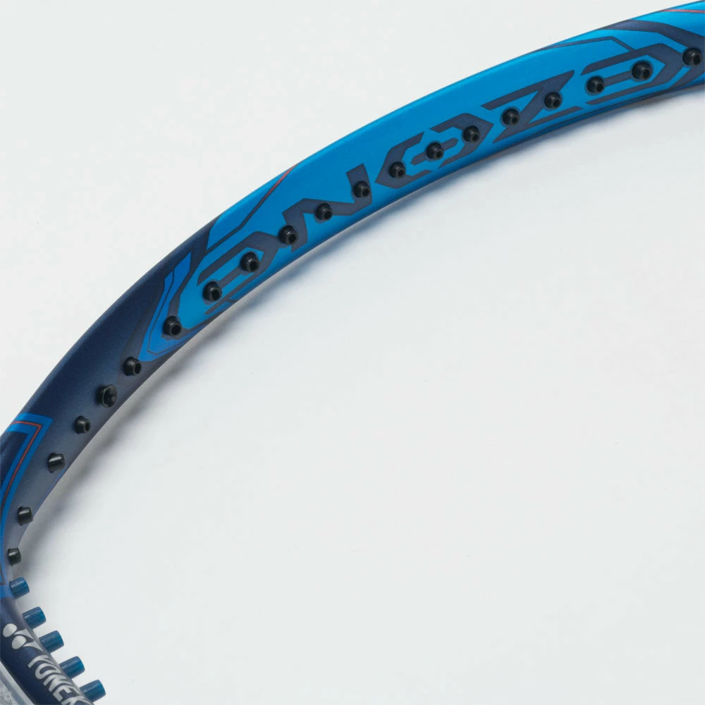 Tennis players looking for power, comfort, and control will find it with the Yonex E-Zone 100+! This tennis racquet uses the largest sweet spot in series’ history for clean and strong hits on the court. Varied angles of the aero-shaped frame gives players a plush, comfortable feel at impact–even on off-centered shots. The Oval Pressed Shaft (OPS) increases spin and control to provide you with the confidence to conquer the competition.